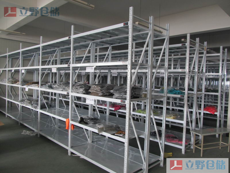 服装货架-叠装架,顾名思义是摆放叠装类服装的货架。可将同类、同季、同系列产品成列在同一区域内。方便区域化分类管理。叠装货架中采用隔网或隔板封闭在货架的侧面和背靠背之间,避免货架上产品的掉落,并且和分隔板一样,也能避免货物之间的串位问题,是众多服装类电商的首选产品。